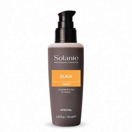 A Solanie fekete szappan a pattanásos, aknés, gyulladt bőrök megmentője. Lúgos kémhatásának köszönhetően bőrpuhító hatású. Fő hatóanyaga az ichtiol jótékony hatással van a gyulladt, pattanásos, aknés, irritált bőrre, és segíti helyreállítani a faggyúmirigyek normál működését. A kellemes illatú, antibakteriális levendulaolaj segítheti a bőr nyugtatását és mindennapos tisztítását. Nem szárít, használata után a bőr hidratált, puha marad, így érzékeny bőrre is alkalmazható. A fekete szappanos lemosást minden esetben kövesse a Fekete tonik, amelynek a pH helyreállításában fontos szerepe van.